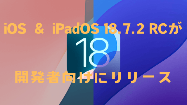iOS 18.7.2 RC、iPadOS 18.7.2 RCが開発者向けにリリースされました。ビルドナンバーは「22H123」となっています。
