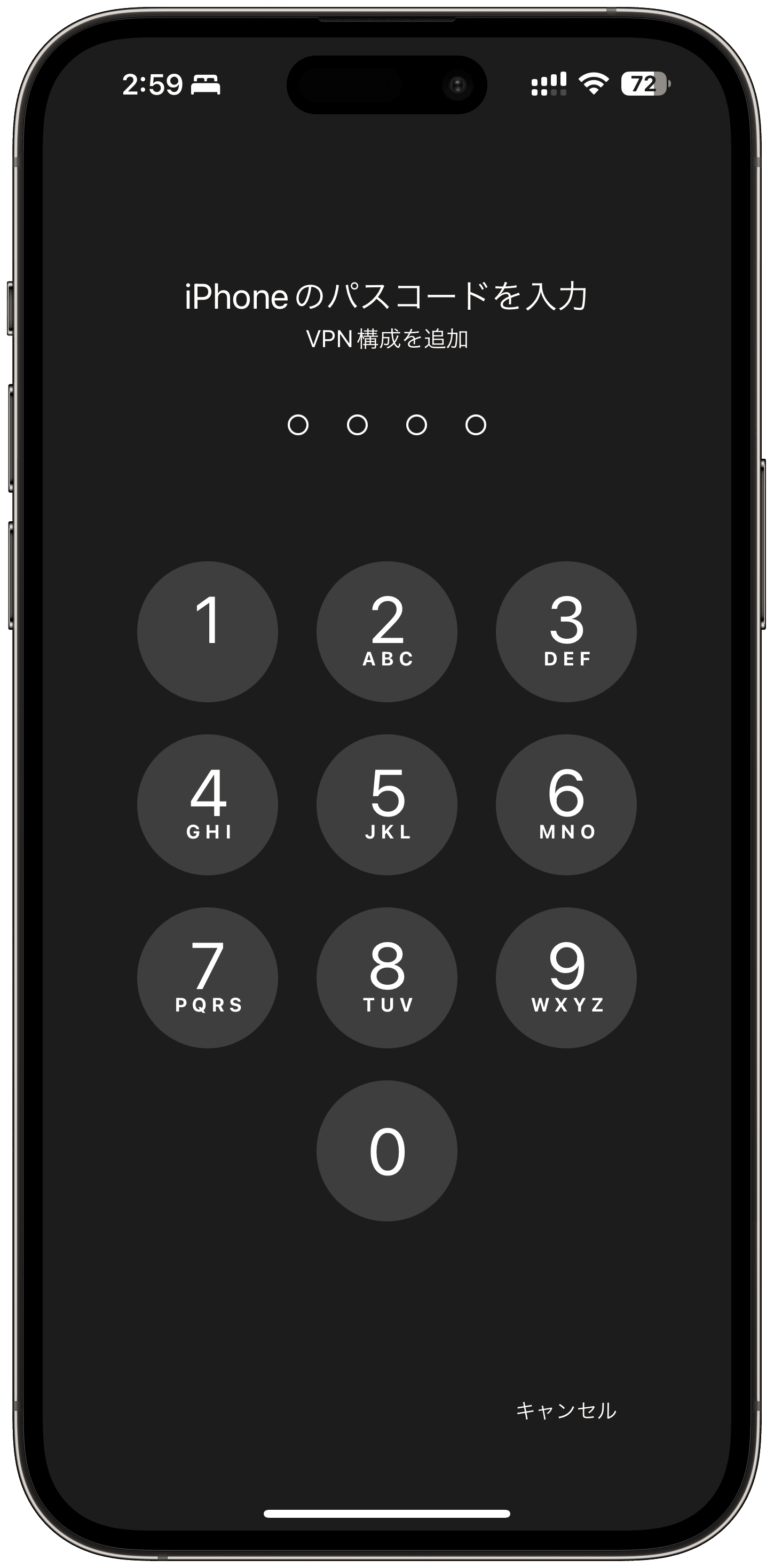 iPhoneにパスコードが設定されているとパスコードの入力画面が表示されるのでパスコードを入力します。