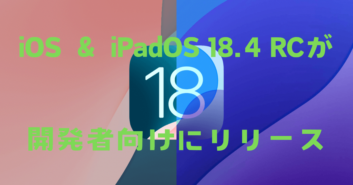 iOS 18.4 RC、iPadOS 18.4 RCが開発者向けにリリースされました。