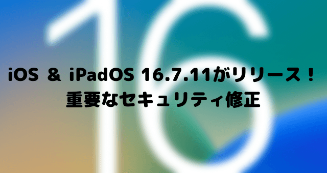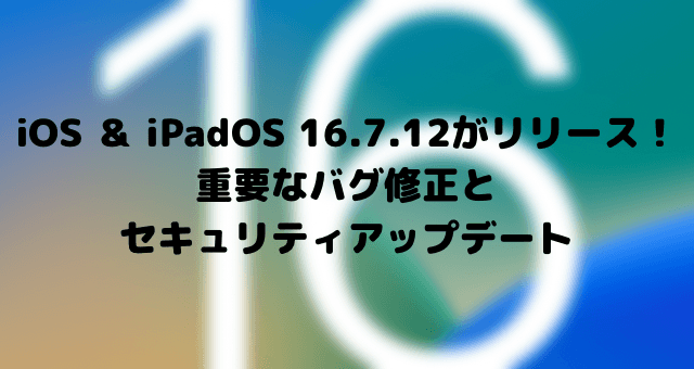 iOS 16.7.12、iPadOS 16.7.12がリリースされました。iOS 16.7.12、iPadOS 16.7.12では、重要なバグ修正とセキュリティアップデートがされています。ビルドナンバーはiOSもiPadOSも「20H364...